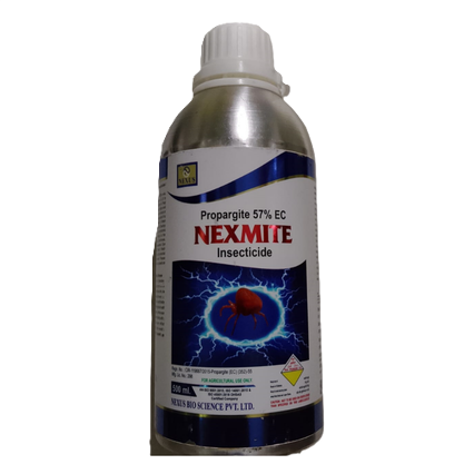 Nexmite Insecticide (Propargite 57% EC) is a highly effective miticide and insecticide used to control harmful mites that damage agricultural crops. It works through contact action, targeting mites at different stages of their life cycle and preventing further infestation.